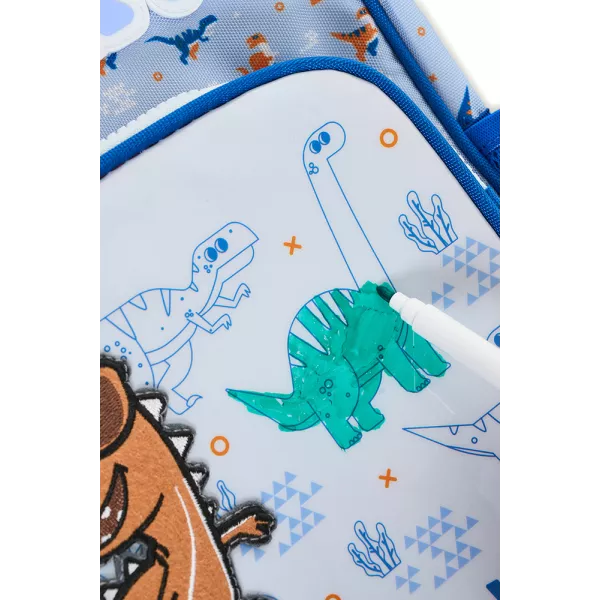 el modelo color azul incluye un bolsillo para pintar y marcadores para colorear, mientras que el diseño color verde cuenta con una capucha de dinosaurio. Tiene correa de pecho ajustable, que aporta mayor sujeción y comodidad al usarla.